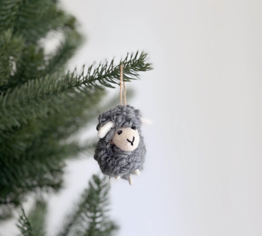 This soft & fuffy flock of felt sheep ornaments will add a unique handmade appeal and rustic farmhouse style to your Christmas tree. Two-to-three-inch yarn hangers are attached, but they can also stand on their sweet little feet if you want to herd them on your mantel. Handcrafted of felt in four different neutral colors, one each black, gray, and white with a white face and white with a brown face, for a bit of variety around the manger.  No need to pack up after Christmas – they’re cute as cute can be displayed on a shelf year-round in kitchen, bathroom, or child’s room.