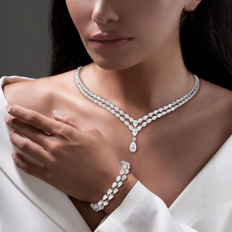 • Pear Cut White Sapphire Necklace & Bracelet Set For Women